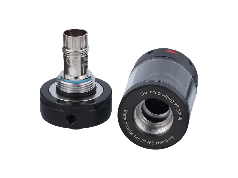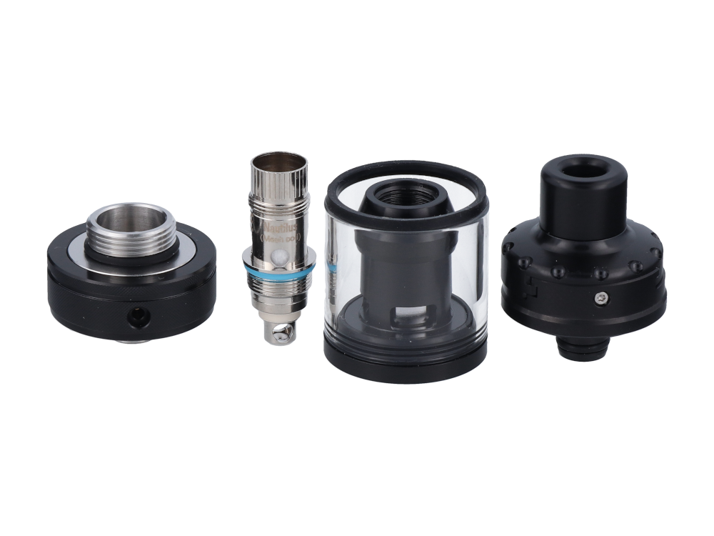 - Lieferumfang: Clearomizer, 0,3 & 1,0 Ohm Mesh Heads, Ersatzglas, Ersatzmundstück, Ersatzteilset, Bedienungsanleitung