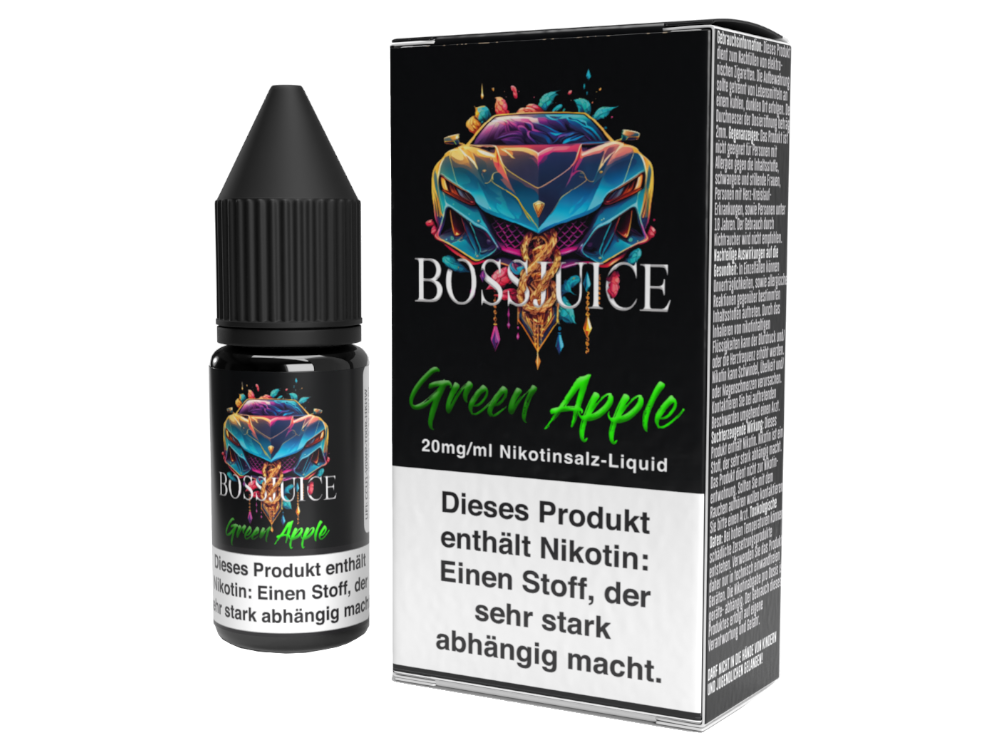 Das Green Apple Nikotinsalz Liquid aus dem Hause Boss Juice schmeckt beim Dampfen nach grünen Äpfeln. Sie erhalten pro bestellter Einheit eine 10 ml Flasche mit 10 ml Inhalt. Das Nikotinsalz Liquid hat einen Nikotingehalt von 20 mg/ml und ist für den direkten Gebrauch in Ihrer E-Zigarette geeignet.Auszeichnung gemäß CLP-Verordnung (EG) Nr. 1272/2008<br
