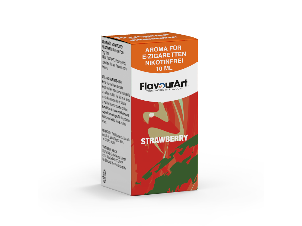 Das FlavourArt Strawberry Aroma in der 10 ml Flasche dient als hochkonzentrierte Essenz zur Herstellung individueller Dampfflüssigkeiten. Die präzise Dosierbarkeit und intensive Rezeptur bilden die Grundlage für maßgeschneiderte Mischungen.
