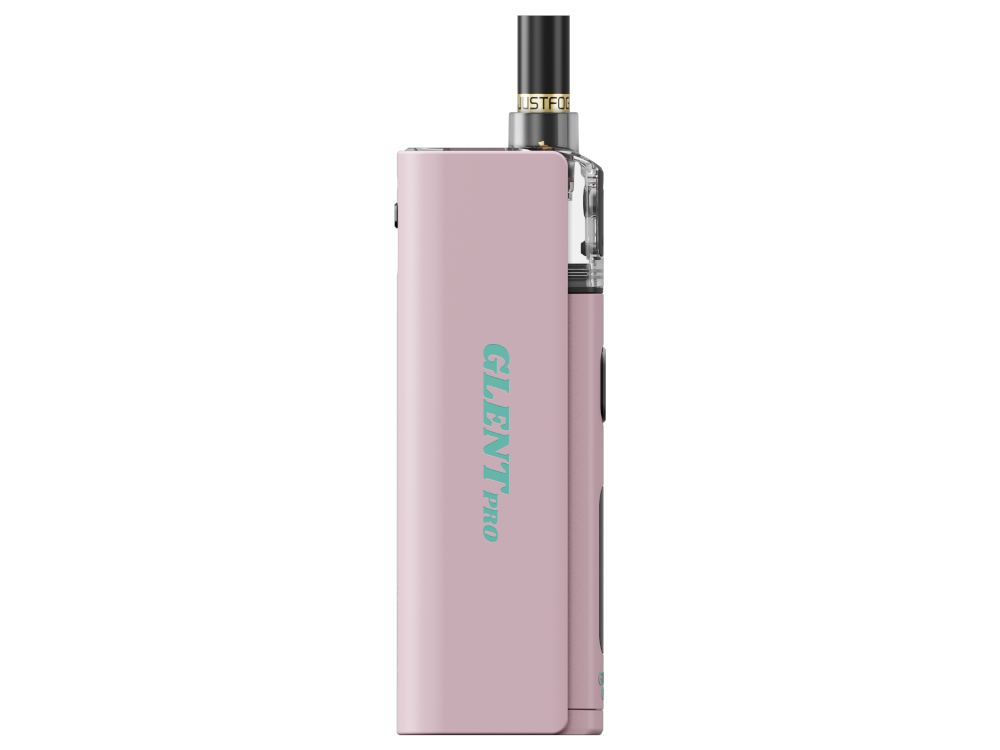 Das Justfog GLENT PRO E-Zigaretten-Set besteht aus einem Akku mit 1.500 mAh Kapazität, einem Display zur Anzeige der Betriebsparameter und dem GLENT Filter Pod mit 3,5 Millilitern Tankvolumen. Die Ausgangsleistung beträgt mit der beiliegenden 0,6 Ohm Mesh Coil maximal 25 Watt. Bei Verwendung einer 1,0 Ohm Cartridge ist die Leistung auf 15 Watt begrenzt. Die Ladung des internen Akkus erfolgt über einen USB-C Anschluss. Der Lieferumfang umfasst ein Standard-Mundstück sowie zwei Filter-Mundstücke. Die Befüllung des Tanks erfolgt über ein Side-Top-Filling-System bei bestehender Verbindung zwischen Cartridge und Gehäuse. Die seitliche Airflow Control dient der stufenlosen Regulierung des Zugwiderstands. Die Verbindung zwischen Pod und Akku ist als Stecksystem ausgeführt.