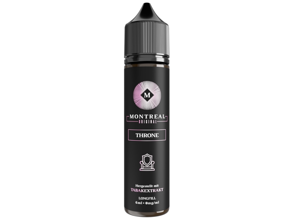 Der Montreal Original Throne Longfill bietet ein 6 ml Konzentrat in einer 60 ml Flasche zur individuellen E-Liquid-Herstellung. Das Produkt verwendet ein spezielles Herstellungsverfahren mit industriellen Tabakmischungen.
