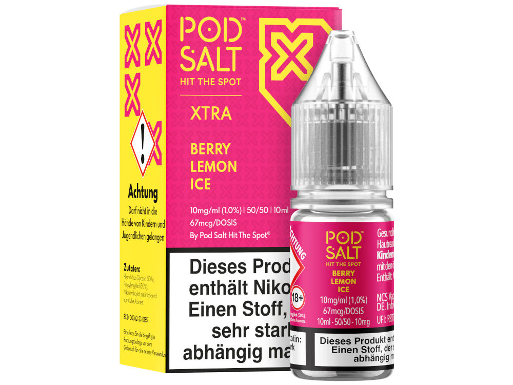Das Pod Salt X Berry Lemon Ice wird in 10 ml Flaschen angeboten. Die Nikotinstärken 10 mg/ml und 20 mg/ml stehen zur Auswahl.